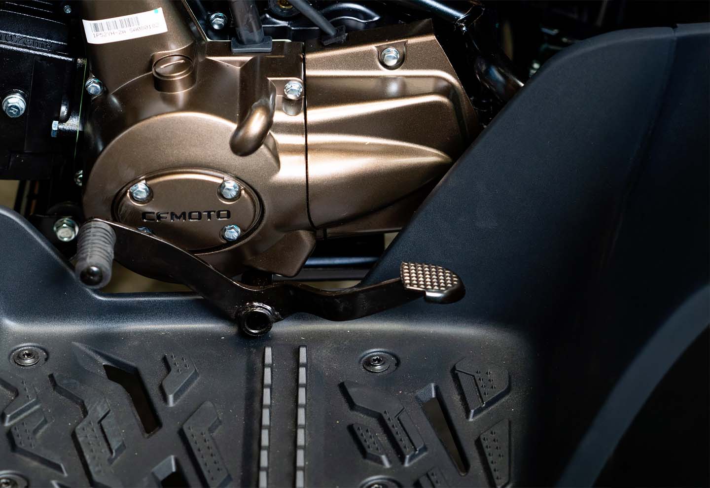 The fuel tank on the electric-start CFORCE 110 is a hefty 6.4 litres, so no range anxiety for those longer days in the saddle.
