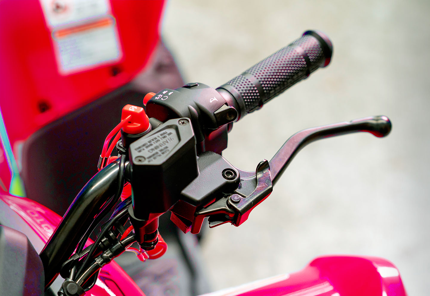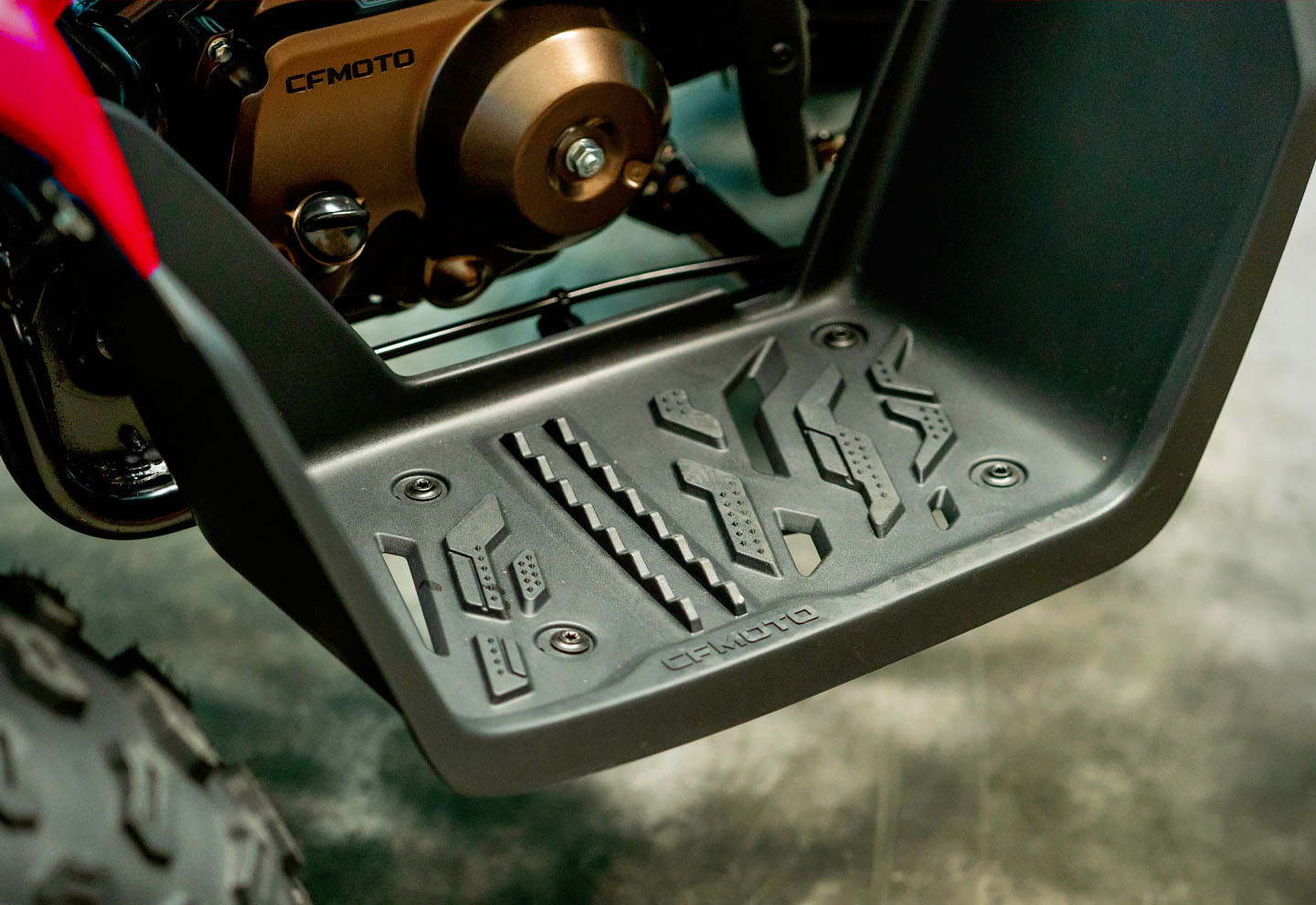 Drum brakes are commonplace in youth ATVs, but the CFORCE 110 bucks the trend with four-wheel hydraulic disc brakes. That's some serious stopping power.