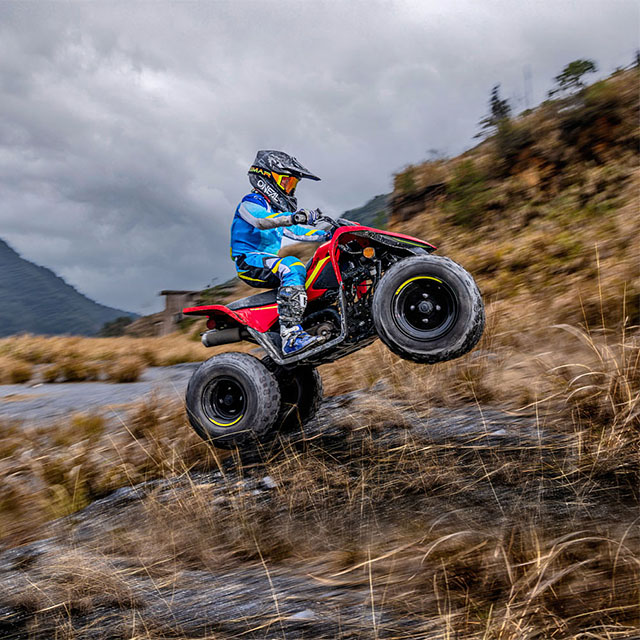 The CFORCE 110 is a smooth operator with a single-cylinder, SOHC, fuel-injected engine and a top speed of 42km/h. It's electric start, too. Add in an agile chassis, up to 157mm of suspension travel and 110mm of ground clearance and the equation is simple: the CFORCE 110 enjoys the thrill of the adventure hunt!